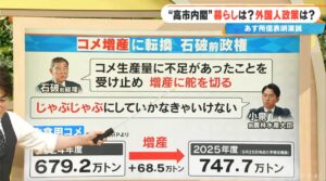 労働時間の規制緩和に続き、石破政権で転換されたコメの増産を止め、再び(自民政権下で長年行われてきた)減退政策に舵を切っていく方針が明らかに。
