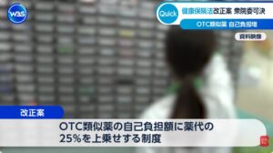 法案は、OTC類似薬について薬剤費の25%を患者負担に上乗せする新たな制度の創設が柱で、増大する医療費を抑制し、現役世代の社会保険料負担軽減につなげることが狙いです。