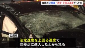 「現場にはブレーキ痕がなく、公用車の運転手は交差点に進入する前の坂で気を失い、そのまま突っ込んだそうです。ドライブレコーダーの解析などから、法定速度の60キロを超えて交差点に進入したとみられている」