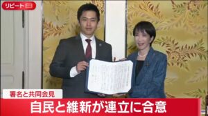 高市新総裁の自民と吉村大阪府知事の維新が連立合意を”スピード締結”。