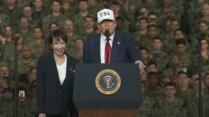 高市早苗首相が28日に、来日したドナルド・トランプ米大統領と米軍横須賀基地を訪れ、米空母を視察した際に、米兵らを前に飛び跳ねるように腕を突き上げている姿が物議を醸している。