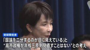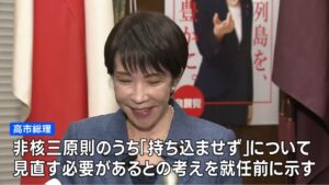 ・大手マスコミが、高市政権の「ある政府高官」の話として、「個人的見解だが、日本は核保有すべきだと思う」と述べたことを報じた。