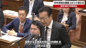 ・2025年11月10日の衆院予算委員会で、NHK党党首・立花孝志容疑者が逮捕された件について、NHK党と会派を組んだ高市総理が「自民はN党と統一会派組んでいない」と放言した。