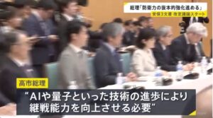 高市首相は、有識者会議の初会合で「ロシアのウクライナ侵略や中東情勢を教訓に『新しい戦い方』への対応や長期戦への備えを進めなければならない」と強調。
