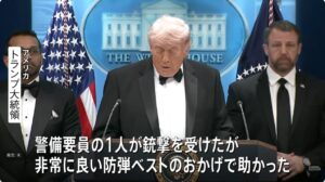 シークレットサービス隊員に命中(防弾ベストで無事)