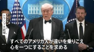 ・2026年4月25日、米ワシントンで開かれたトランプ大統領らが出席した夕食会において、散弾銃や刃物を持った男が侵入し発砲。トランプ氏らは警護隊の誘導で非難しケガはなかった。